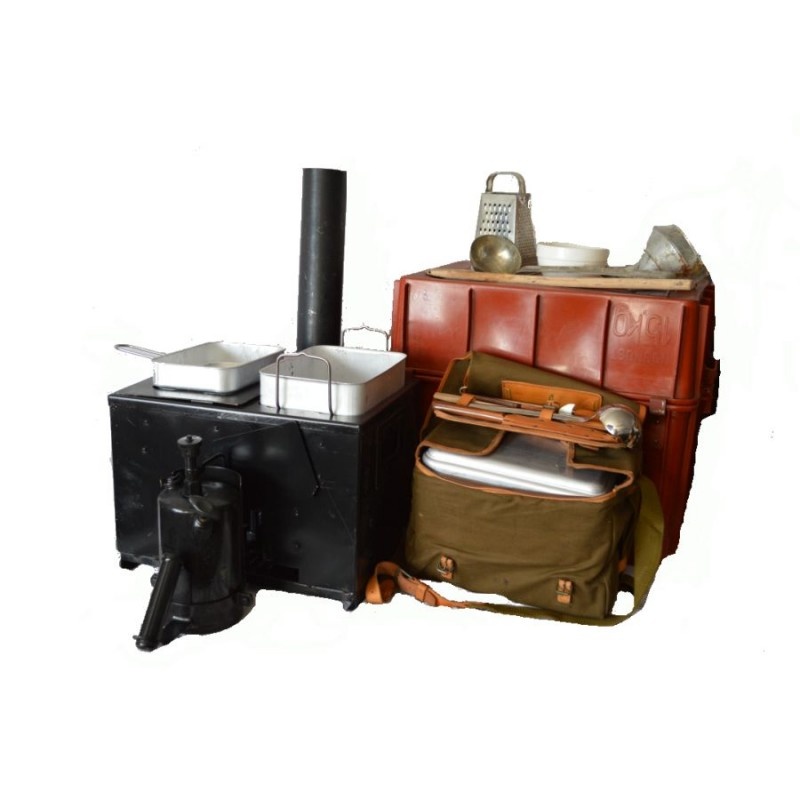 vybavenou brašnu s nádobím a příslušenstvím a kompletním krbem s letlampou, bez bedny, foto ilustrační. Dohoda možná.
