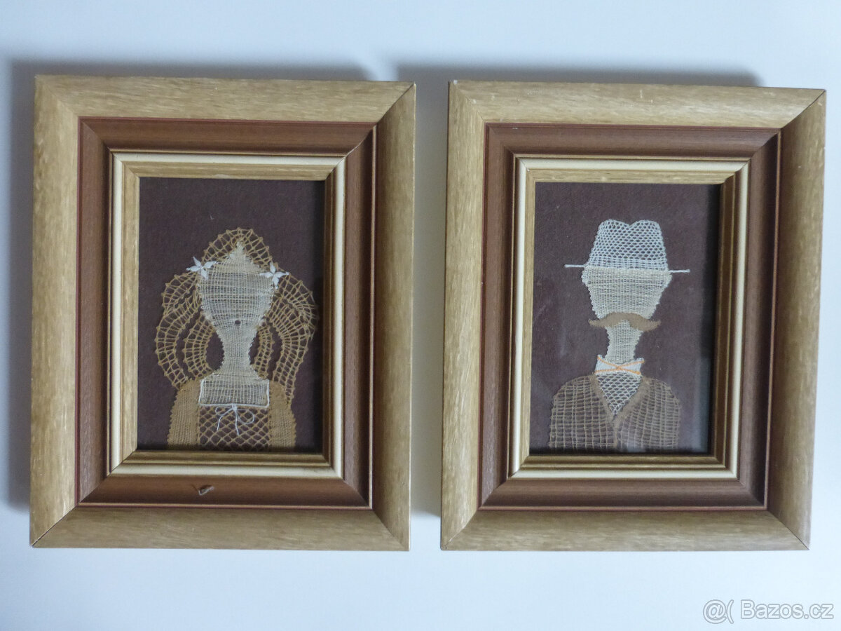 krajky. Rozměry zarámovaných obrázků jsou