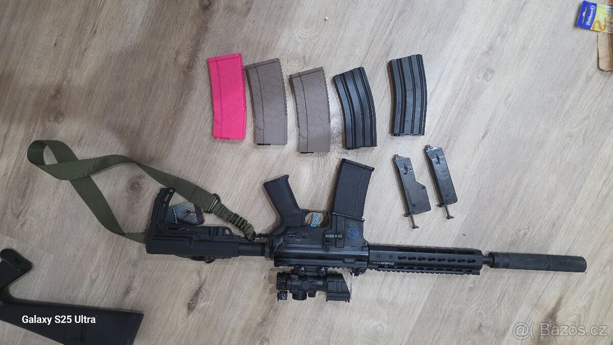 zasobnik na 140bb a 2x točný ,2x baterku 11,1v ,kule a optiku