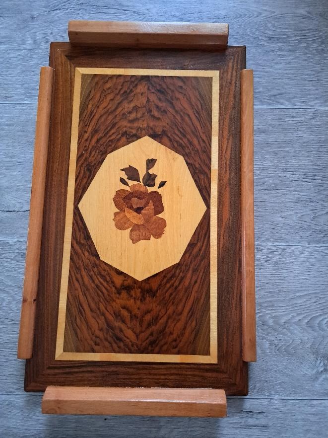 Prodám dřevěný intarzovaný podnos, nepoužívaný, výborný stav.