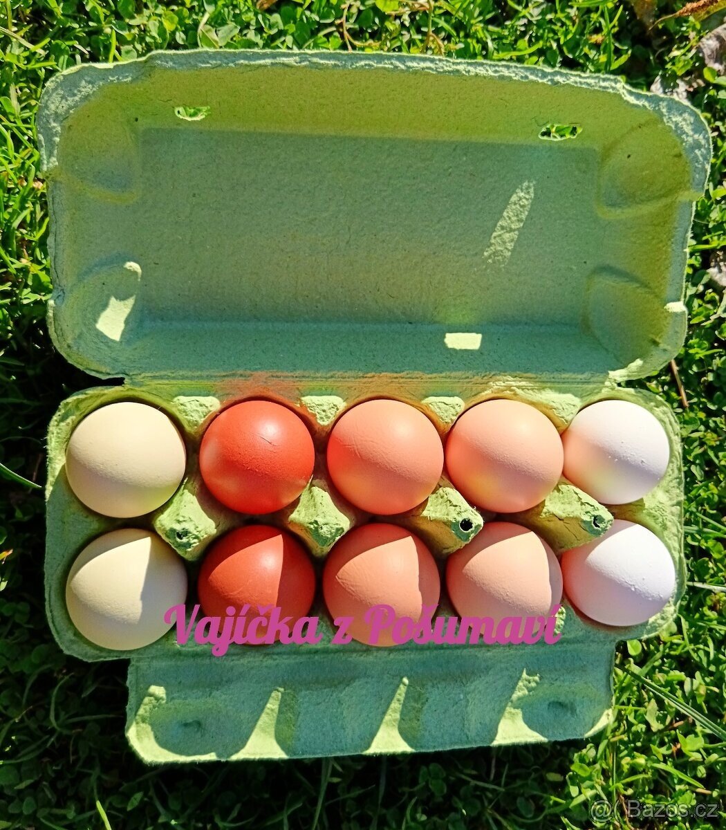 Kvalitní domácí vajíčka od šťastných slepiček z chovu s přirozeným volným výběhem a zajištěným welfare, krmených kvalitním krmivem bez chemických léčiv, a přirozenou potravou. Vajíčka mají vynikající chuť.