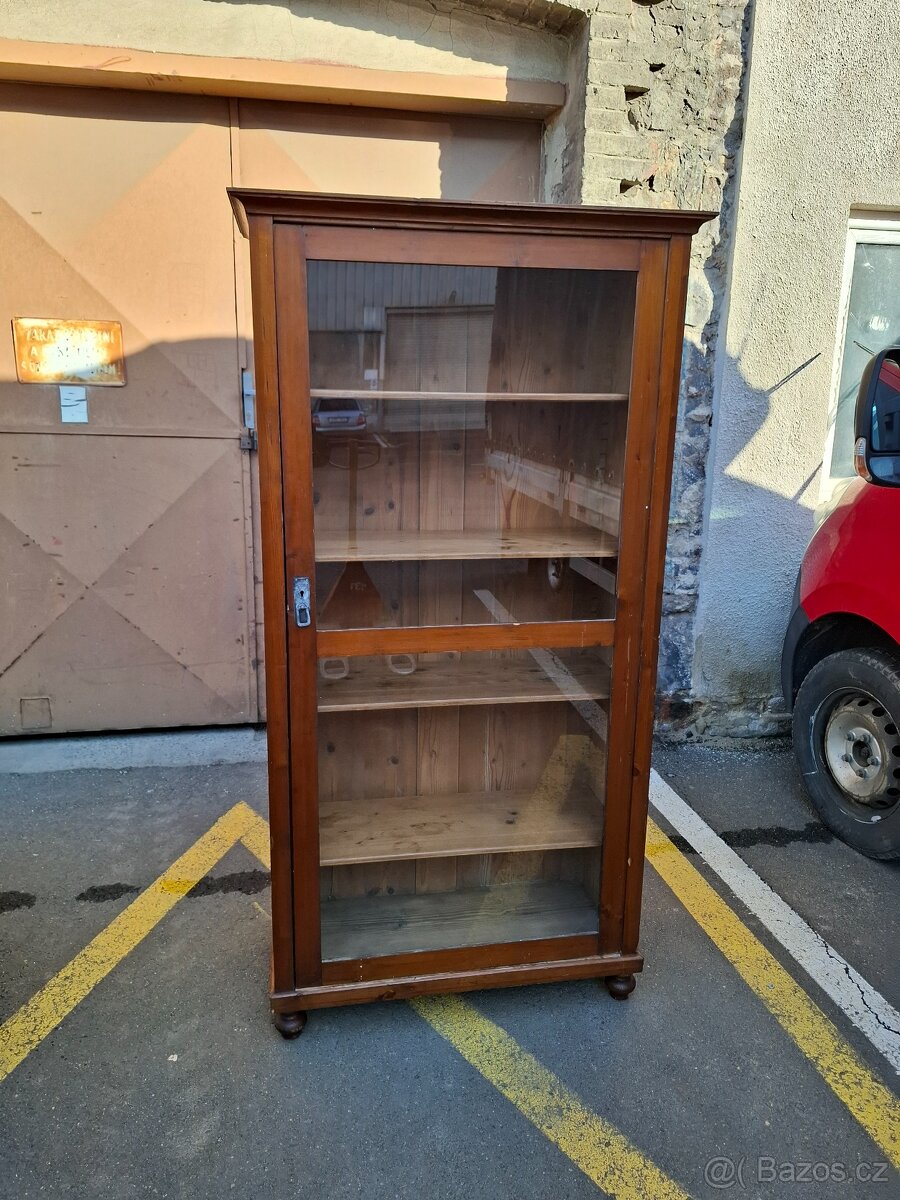 Jedná se o starožitnou dřevěnou vitrínu (skleník), pravděpodobně ve stylu pozdního biedermeieru. Tyto kusy nábytku byly typické pro 19. století a sloužily k vystavování knih, sběratelských předmětů nebo jako lékárenské skříňky.
