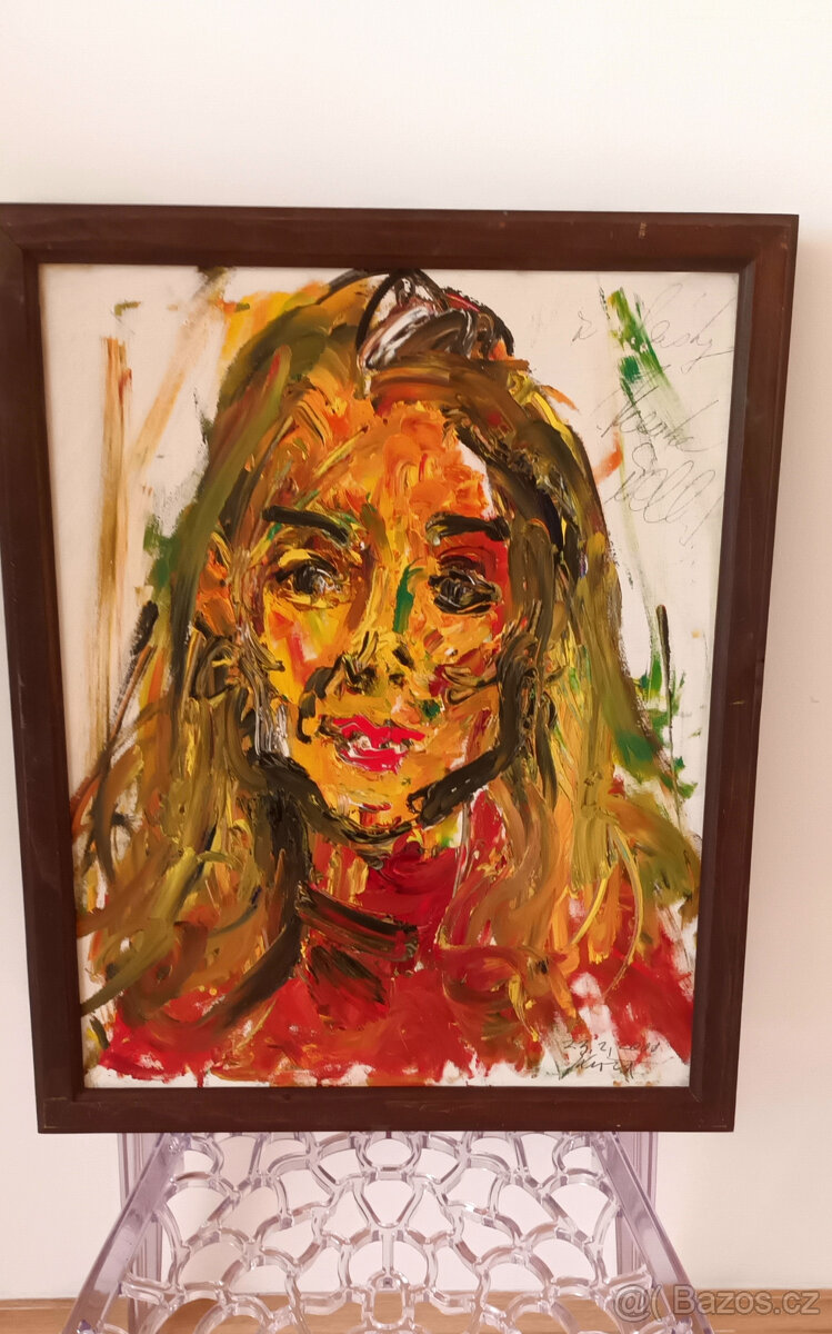 Raritní olejomalba z roku 2000 miss Evropa 1995 Monika Žídková od akademickeho malíře Antonína Kroči.