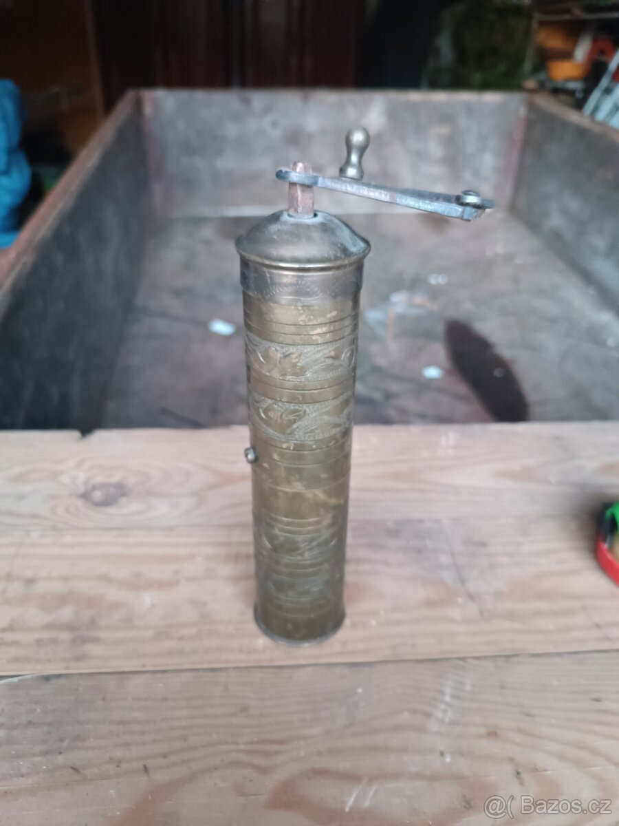 Starožitný mosazný mlýnek.