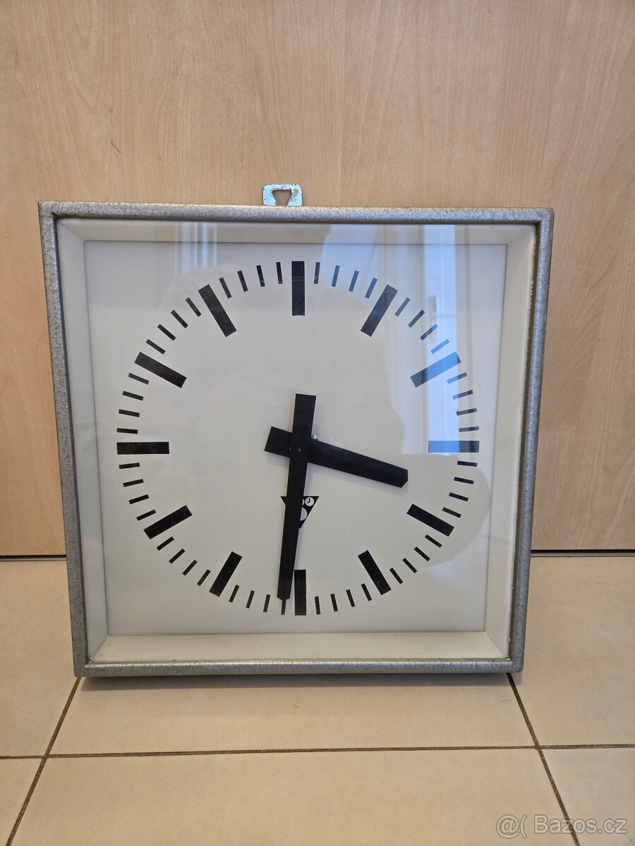 Staré RETRO fabrikové, školní hodiny Pragotron Elektročas PS-100, podružné