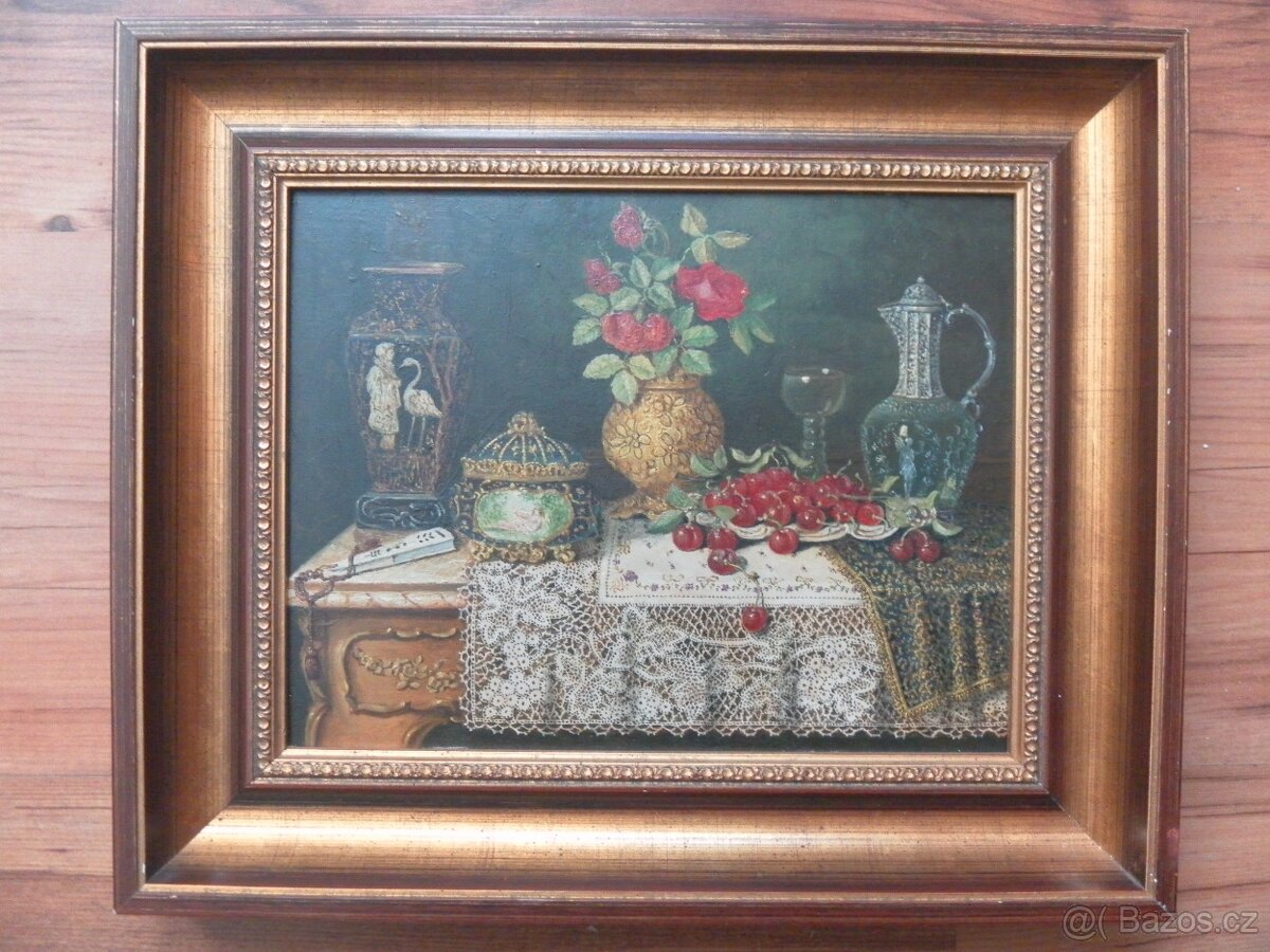 Nabízim krásný, zajímavý obraz: Zátiší na stole. Olej na dřevěné desce.