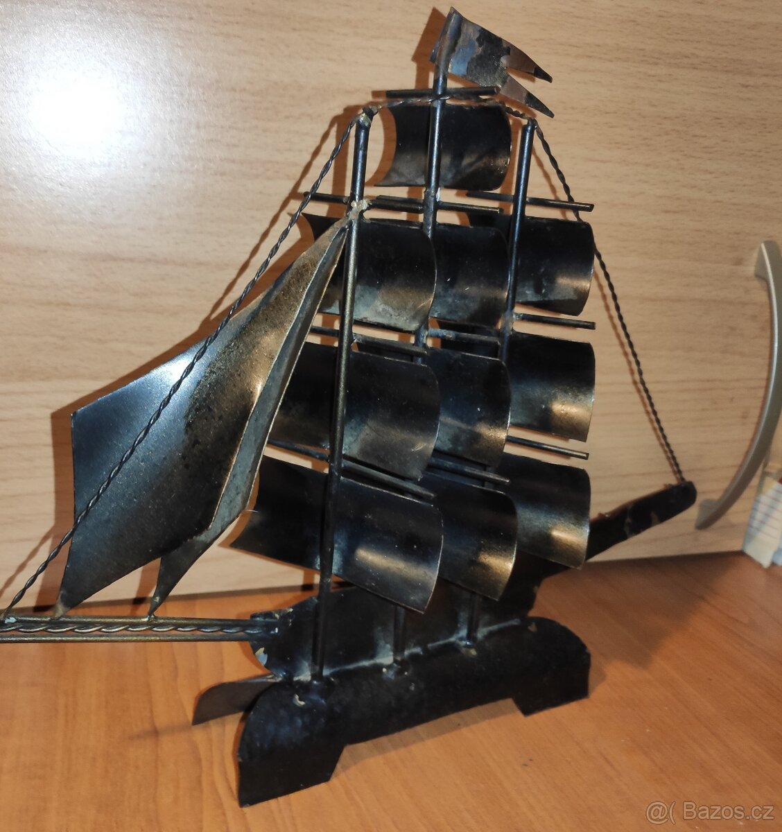 Kovová a asi i kovaná retro dekorace starodávná loď plachetnice brigantýna možná