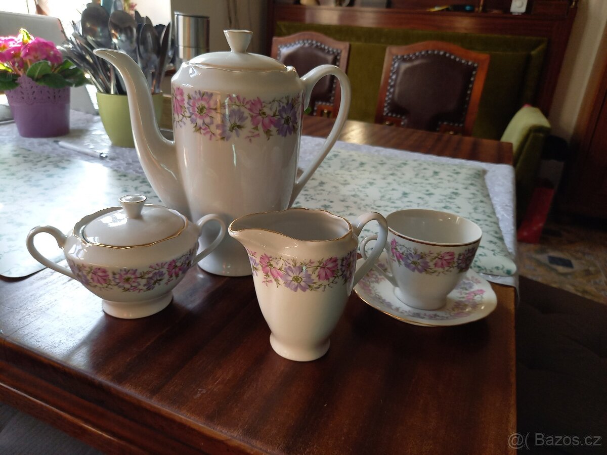 Prodám, servis ze 70.let, kompletní. Pozůstalost. Konvice, cukřenka, konvička na mléko a šest šálků s podšálky. Našel jsem jeden jediný maličký oťuk na jednom šálku, jinak jako nové. Dohoda jistá.