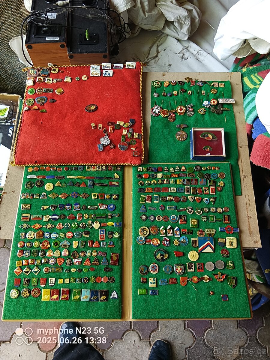 Staré odznaky 4 plata celek 1200kc,krabička a konvulent u toho350kc,vojenské 2obrazky celek850kc,zbytek300kc dohoda