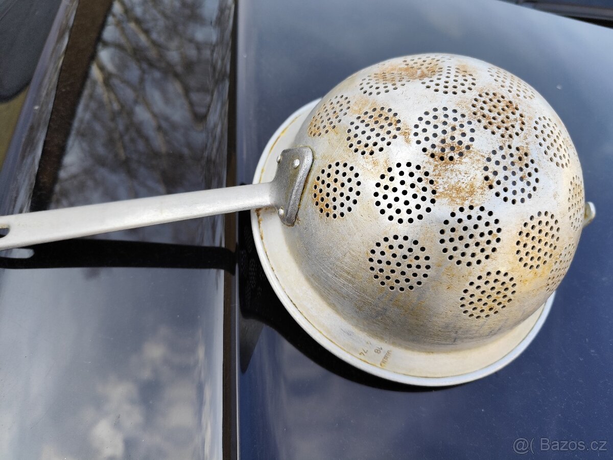 Prodám retro hliníkový cedník průměr 20 cm, délka úchytky 42 cm.Cena 150 Kč.Retro stouchadlo na brambory 70 Kč.Delka 36 cm.Retro drátěná naběračka na knedlíky délka 36cm, průměr 10 cm.70 Kč.