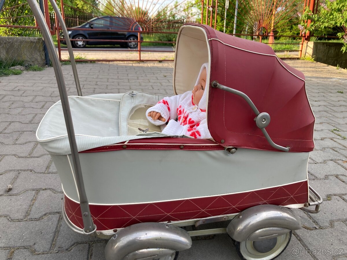 Retro porcelánová panenka, kočárek,kolébka. - TOP - [7.2. 2026]Prodám kočárek na panenku výška cca 55cm. Porcelánová panenka výška cca 38cm , kolébka s porcelanovou panenkou která má i certifikát viz foto. Nejlépe vše najednou. Prosím volat.