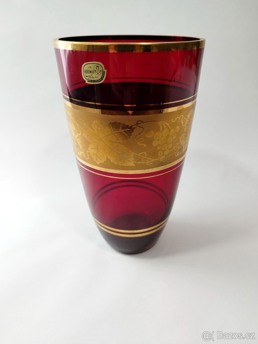 Dobrý den. Nabízím klasickou vázu od J. Gabrhela. Rubínová varianta. Nepoškozeno, zlacení v pořádku, značeno, viz fotografie. Průměr cca 12 cm, výška 20 cm. Možnost osobního předání na trase Lovosice - Praha, případně Balíkovna, či Zásilkovna po platbě předem, balím poctivě. Děkuji.