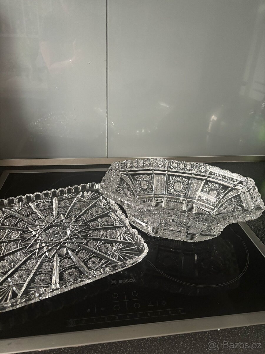 Broušené sklo-misa a tac