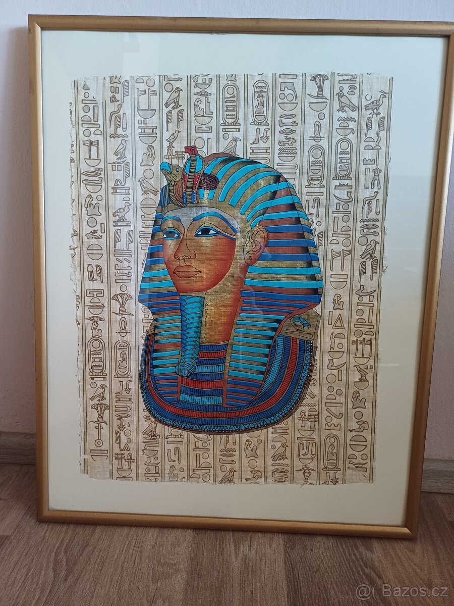 Egyptské papyrusy - 2 velké zarámované obrazy (400 kč/ks) a 1 malý nezarámovaný obrázek (50 kč/ks).