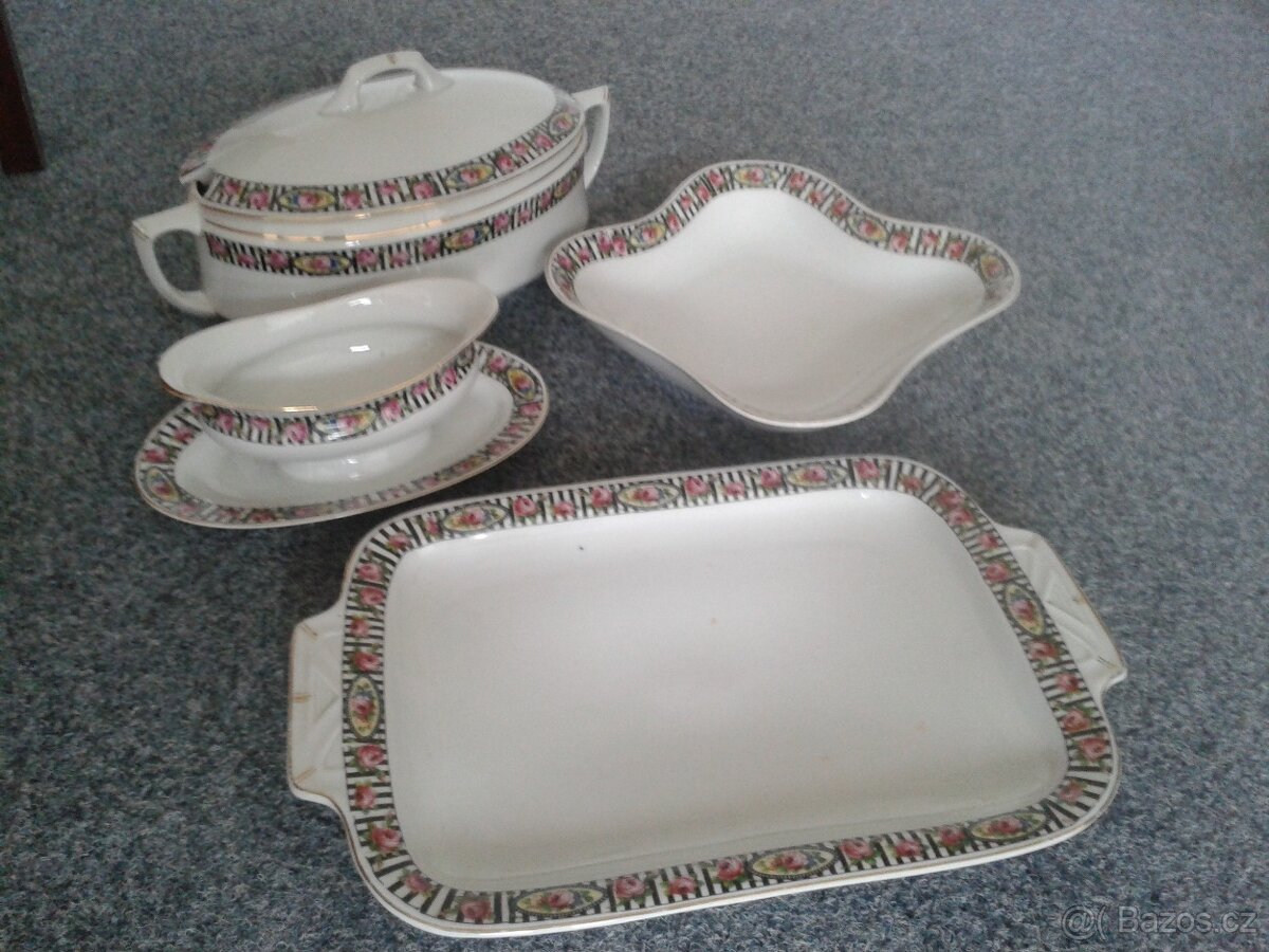 krásný jídelní servis s růžičkami