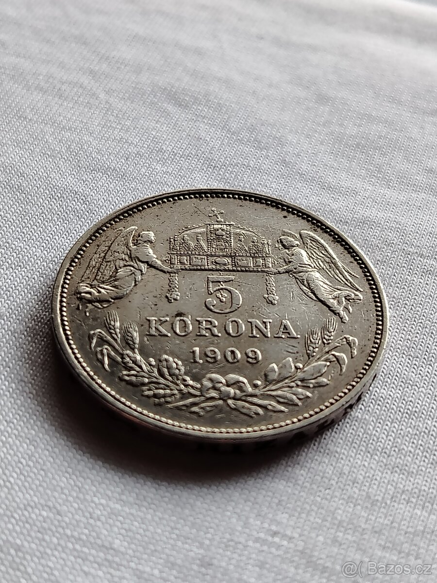 Stříbrná 5 koruna roku 1909. KB.R
