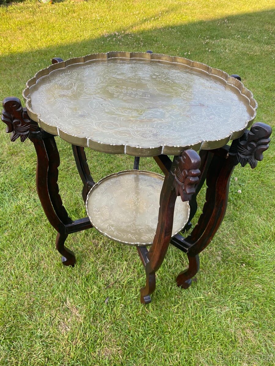 Predam starozitny skladaci stolik s mosadznymi podnosmi