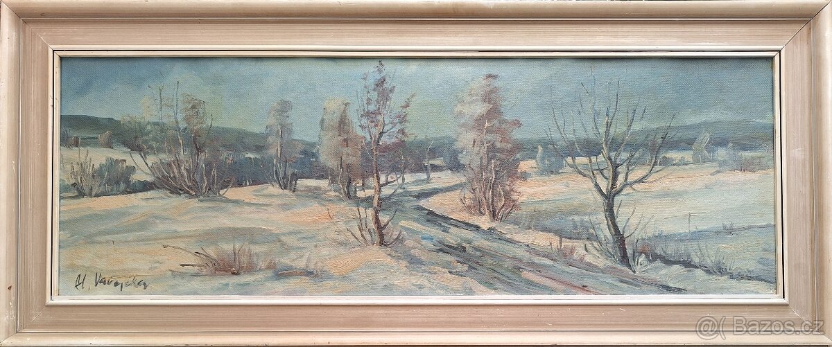Zimní nálada, olejomalba na kartonu o rozměrech 35x100 cm, s rámem 49x114 cm, signováno.