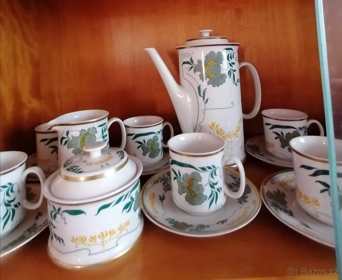 Prodám čajový servis zeleno -zlaté barvy ,cena 400,-,pouze osobni odběr