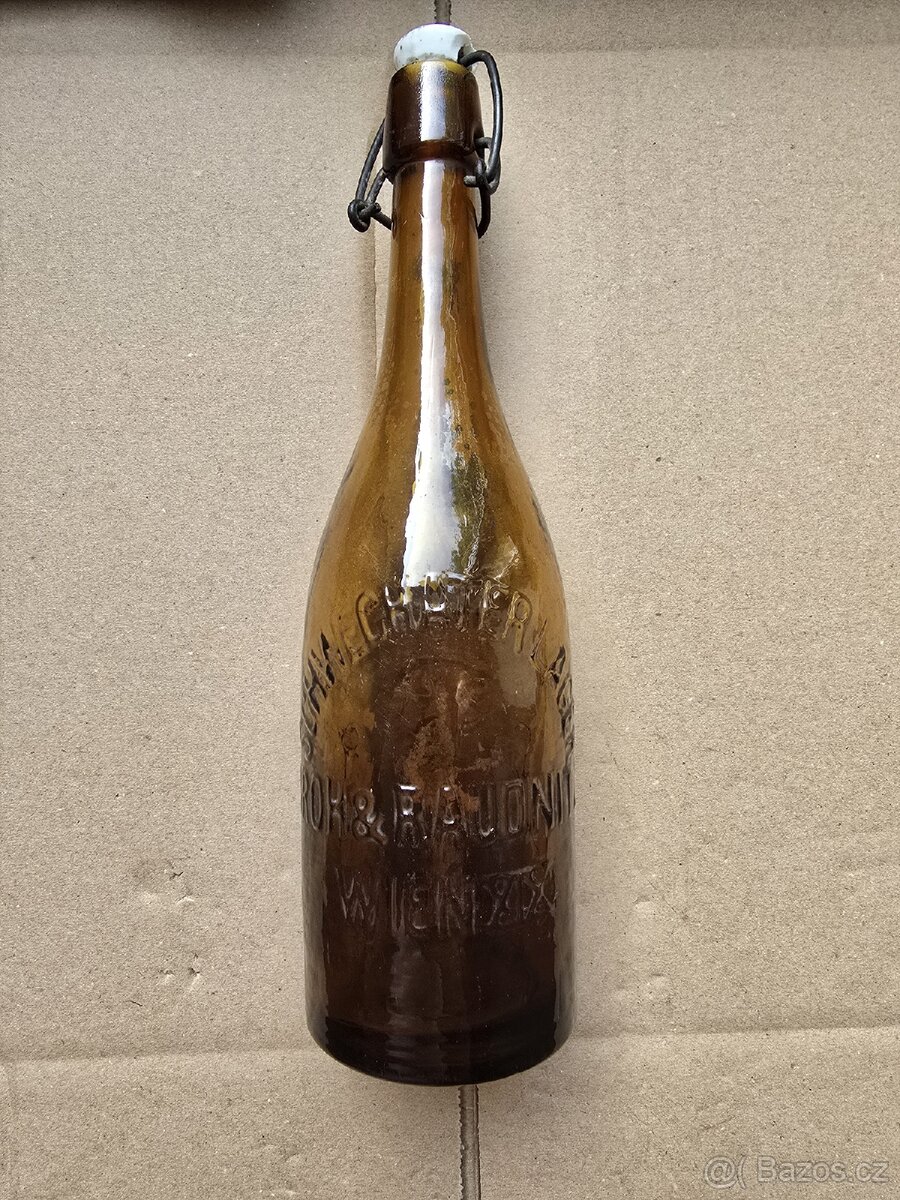 Pivní láhev 0.5l, z doby starého Rakouska, uštíplá u dna a na patentu