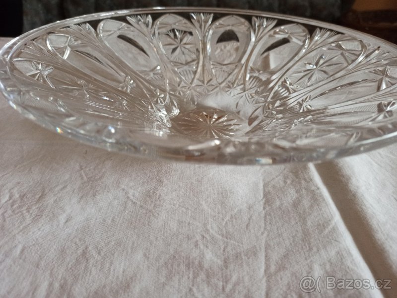 Prodám broušenou mísu z českého křišťálu. Průměr 32 cm. Výborný stav.