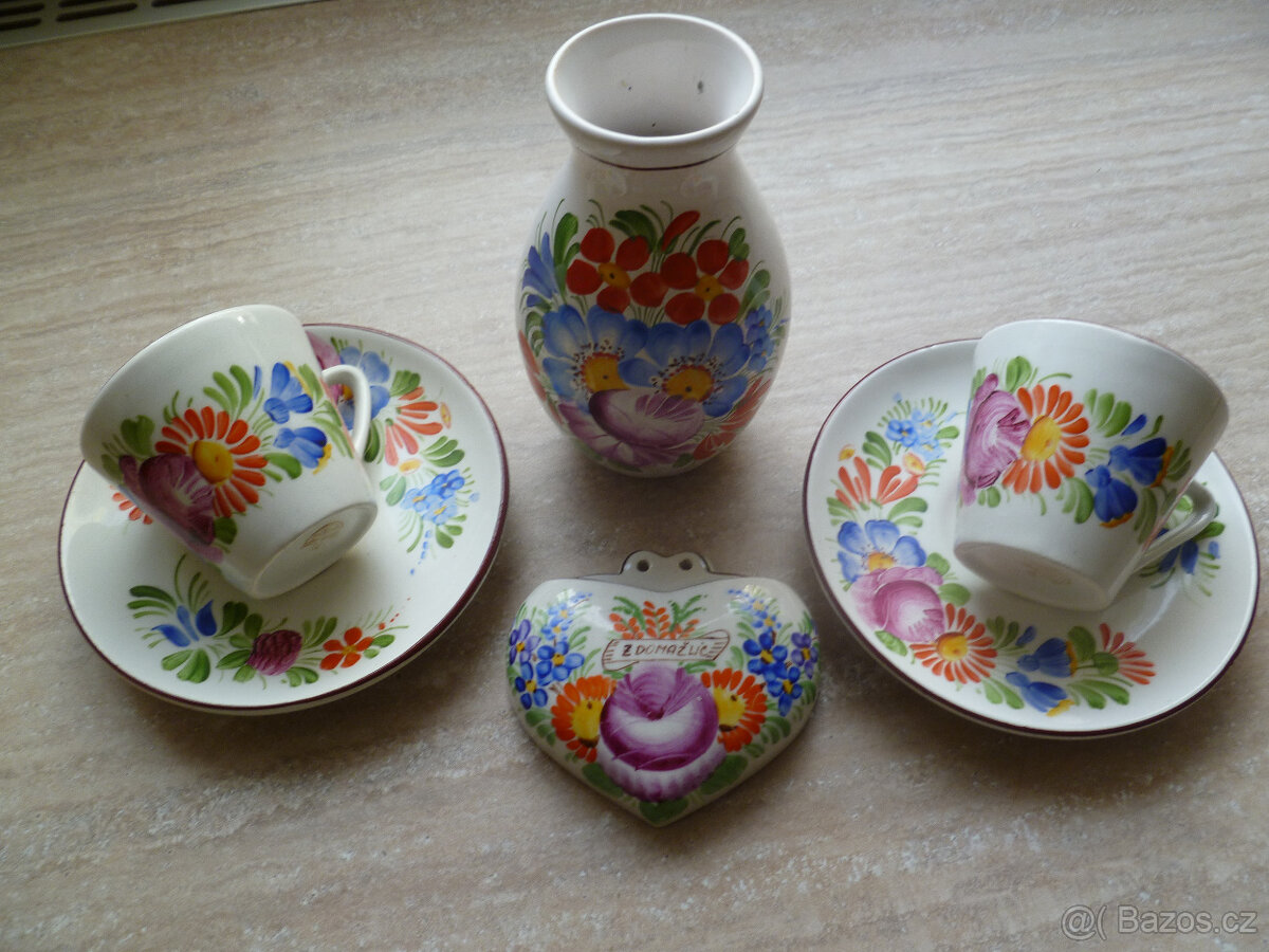 Prodám bílou chodskou keramiku, 2 hrníčky na kávu nebo čaj s podšálky 289 Kč, srdíčko 129 Kč, váza 259 Kč, výrobce Chodovia Domažlice, vhodné pro sběratele, možno odebrat dohromady nebo zvlášť