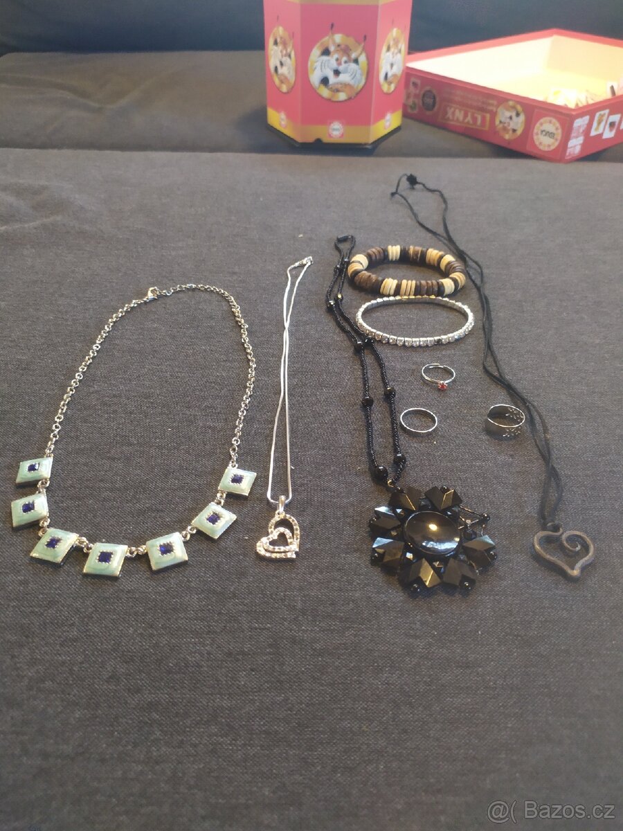 Sada různých Šperků,náramky, náhrdelníky a prsteny.některé jsou poškozené.