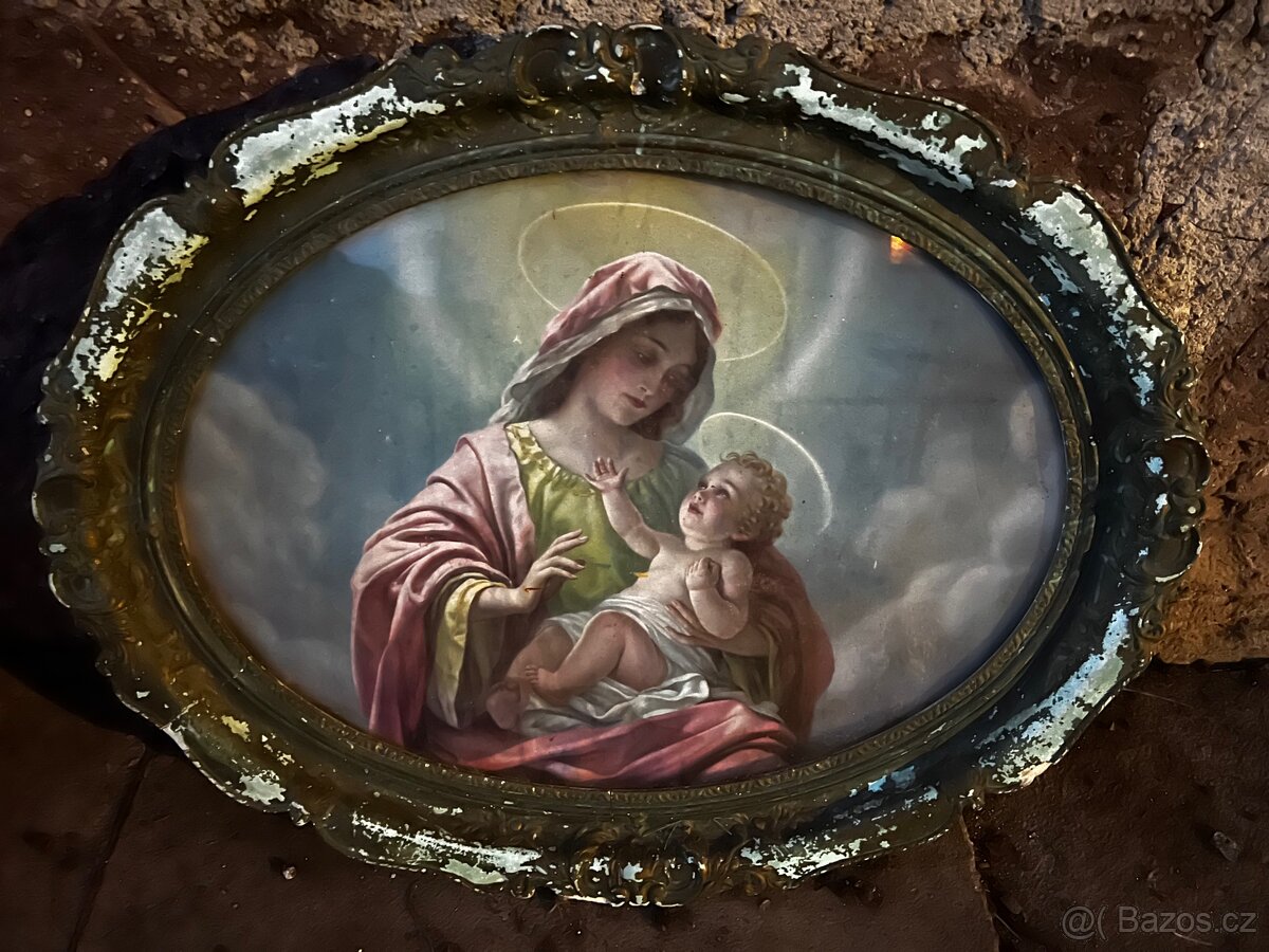 Starožitný oválný obraz - [19.2. 2026]Prodám starožitný obraz s náboženskou tématikou ve velkém dřevěném oválném rámu s ořechovou kresbou dřeva. Obraz není malovaný, jedná se o dobový tisk, dřevěný rám je včetně zasklení, dřevo zdravé (bez červotoče). Rozměry: 136 x 68,5 cm. CENA 800