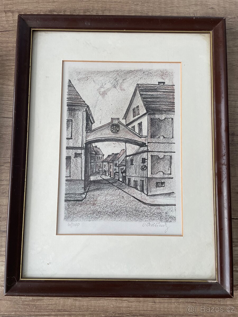 Prodám obrazy Vladimíra Cidlinského kde je vyobrazen Benešov u Prahy. Oba mají na sobě značku 45/100.Cena za oba je 1000kč. Možnost pošty při platbě předem.