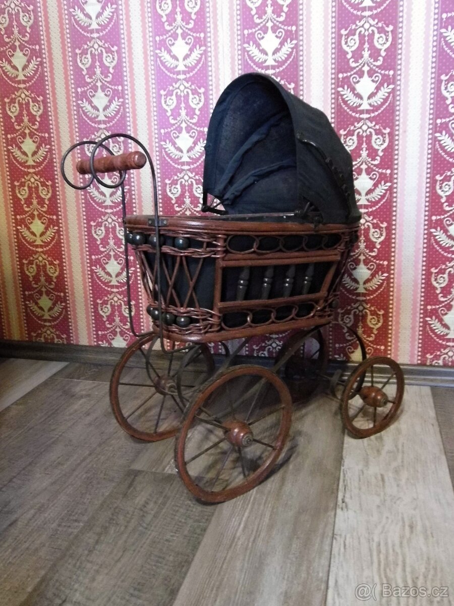 Proutěný kočárek na panenku