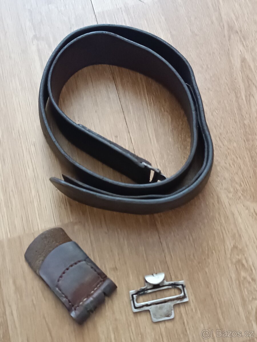 Originální opasek Wehrmacht, kůže měkká,vypadá dobově přešit,délka 90cm.K opasku dám ještě originální háček na opasek a originální jazyk k přezce.Cena 2000Kč, včetně zásilkovny.