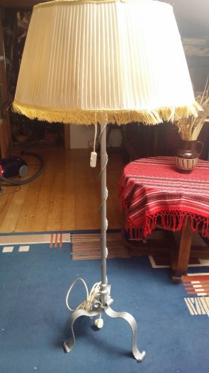 Prodám starou kovanou stojací lampu,výšky 160 cm,průměr stínidla u vrchu 50 cm,ve spodní části 60 cm.