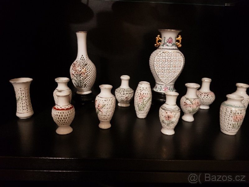 Prodám 13ti dílnou sadu váziček,vyšší vázičky 18cm a malé 8cm.