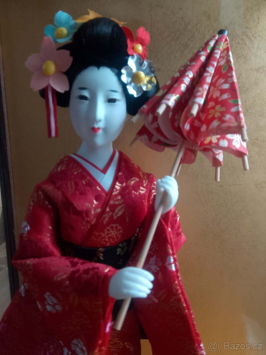 Prodám tuto panenku gejša vyrobenou v Japonsku, krásná ruční práce. V ceně je i dřevěná originál vitrínka na panenku, také výroba a dovoz z Japonska.