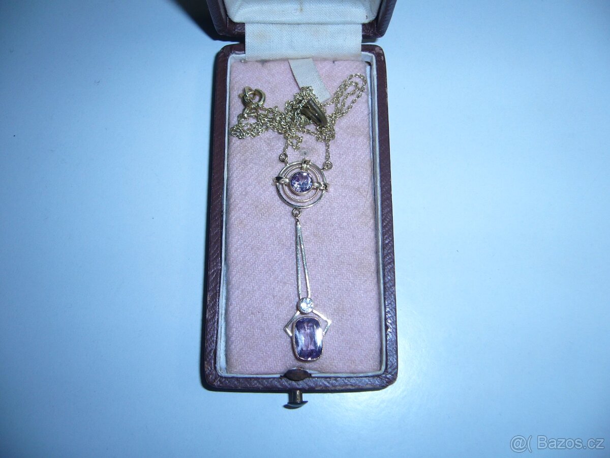 Prodám excelentní,zlatý secesní kolier.Délka řetízku 44cm.Délka přívěsku 5cm.Zlato 14k-starý punc.Stáří okolo roku 1900.Mob:723 122 087.