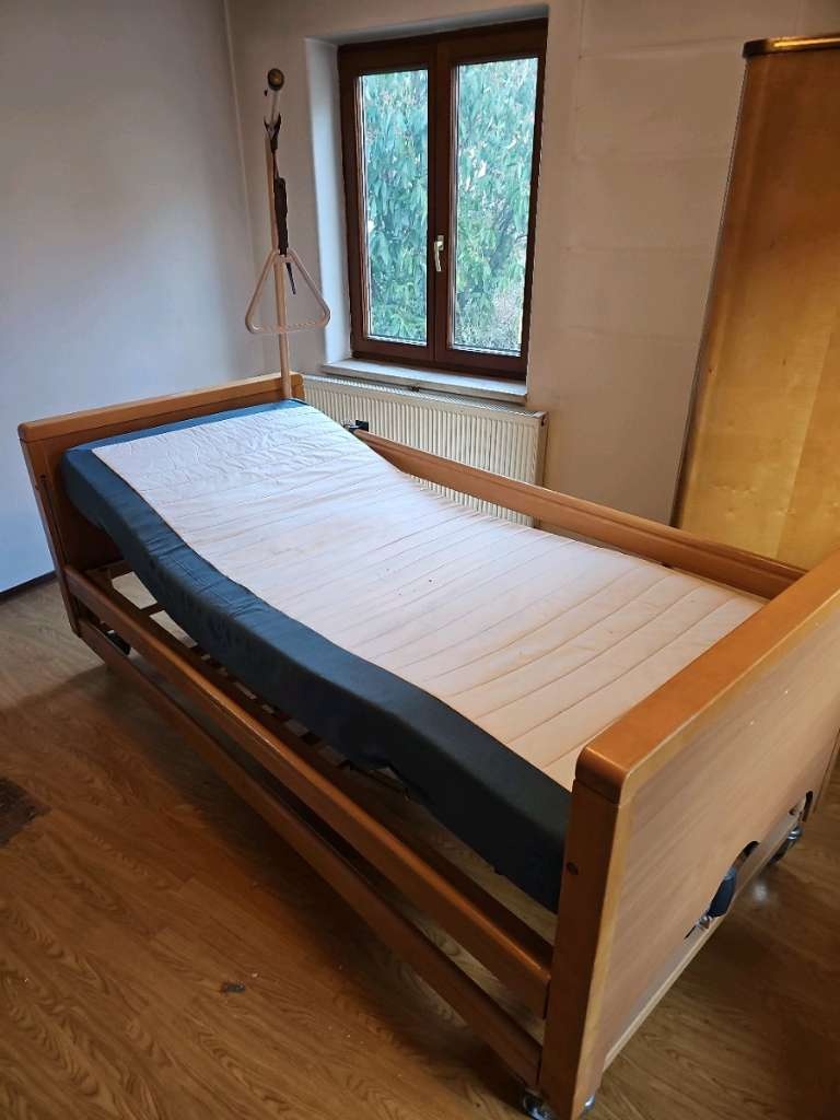 Lůžko je 100% funkční. Hrazda s trojúhelníkem a stahovatelnými bočnicemi. Má kolečka s brzdami a rošt lze polohovat pod hlavou i nohami. Celá postel jde též nastavit výškově. Inzerát platí do smazání. Mohu dovézt, smontovat za ca 800,- Brno, Znojmo, Třebíč, Jihlava, Břeclav.
