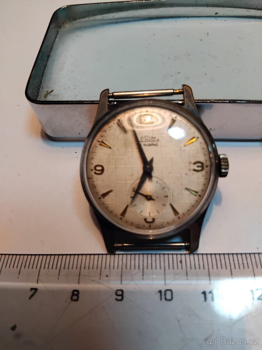 Hodinky Prim - [5.3. 2026]Prodám hodinky Prim šupináč. Na rubu vyraženo: dno z oceli nerez - prachotěsné pouzdro.