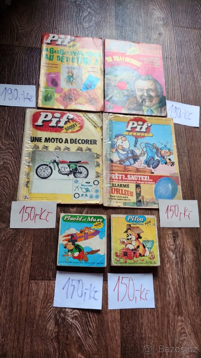 Časopisy Pif- 6 kusů,jsou potrhané, slepované, používané.Starší z roku 1976,1982 a malé z roku 1977.Cena za komplet.Cena bez, Zásilkovy,po Praze lze po dohodě vyzvednout v prodejně na metru C Ládví Po-pá 13 -19h víkendy zavřeno