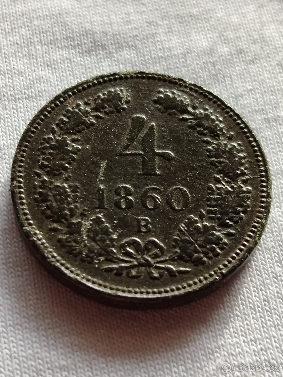 Mince 4 Krejcar Roku 1860 B. Stav sběratelský viz fotografie. Pište koukněte na mé další inzeráty