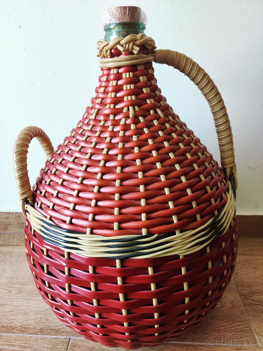 Demižon 3l - [21.2. 2026]Prodám starší skleněný demižon, obsah 3 litry. Je opletený klasickým "rákosem", slivovice již v něm není!