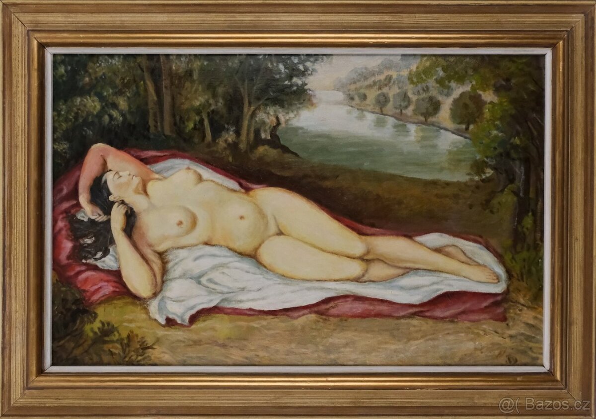 Olej na kartonu, 44x70 cm. Monogramováno vpravo dole nečitelně. Datováno 39 POŠTOVNÉ 350,-