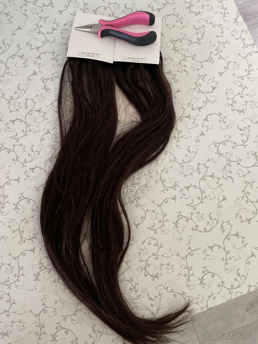 Mám k dospozici 2 nepoužité sety. Očka pro provlečení na pramenech( není tedy potřeba žádných nástrojů, pouze kleštiček ke zmáčknutí očka).