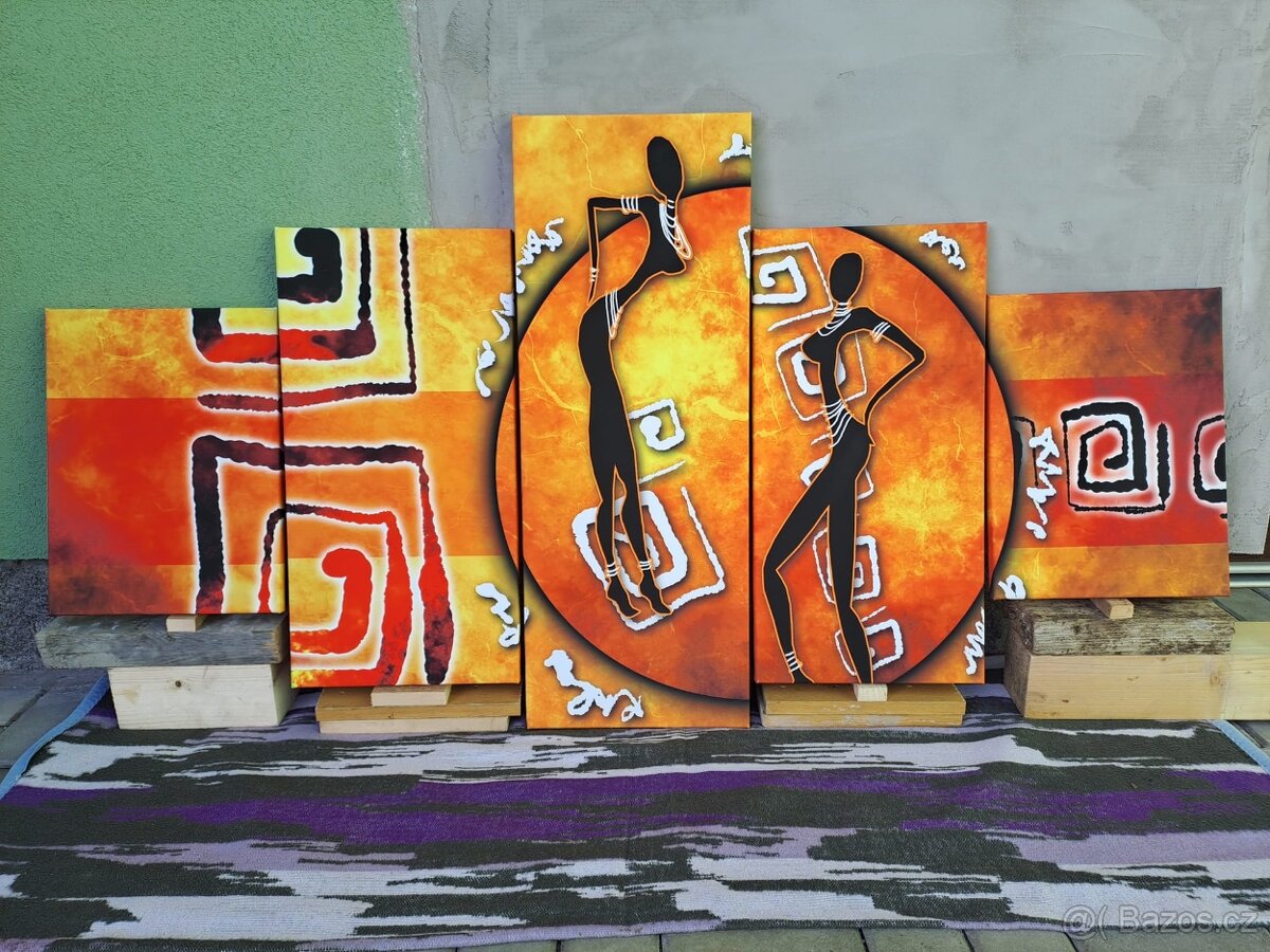 Prodám pěti dílný tištěný obraz afrických tanečnic na plátně s dřevěným rámem.