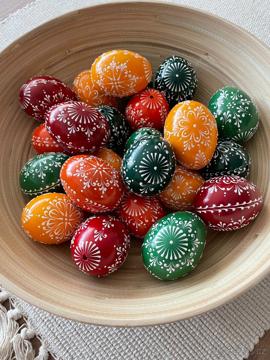Ozdobte si stůl velikonočními kraslicemi v jarních barvách - slepičí vajíčka M zdobené voskovou technikou na lakovaném podkladu. Vybírat můžete z mnoha barevných variant - namixujte si svou oblíbenou kombinaci. Osobní odběr Praha 6, nebo zaslání Zásilkovnou. Cena za kus 50 Kč. Možnost navázat na bílou stuhu + 5,- Kč/kus. Nabízím i jiné druhy- viz mé další inzeráty.