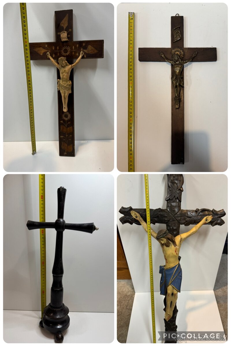 Krize krucixy,svícny poniklovane - [16.2. 2026]Kříž velky už není,maly reliéfy 22cm 400kc,svícen s reliéfy22cm 300kc,svicny30cm 300kc,kříž Železný starozitny40*20cm600kc,ostatní dřevěné Staré ks650kc, vše pěkně starožitné dohoda