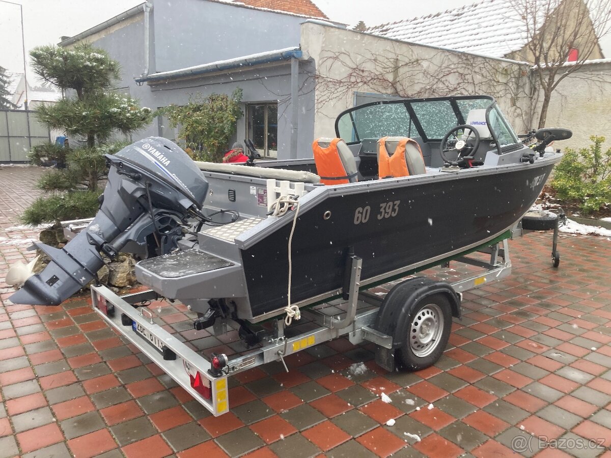 Prodám rybářský hliníkový motorový člun s vlekem cena 399000 super stav + biminy loď s lůžkovou úpravou! Vhodné Lipno Vranov mušov sonar lovrenc,převozní plachta vestavěna nádrž.po domluvě příďový motor Minkota