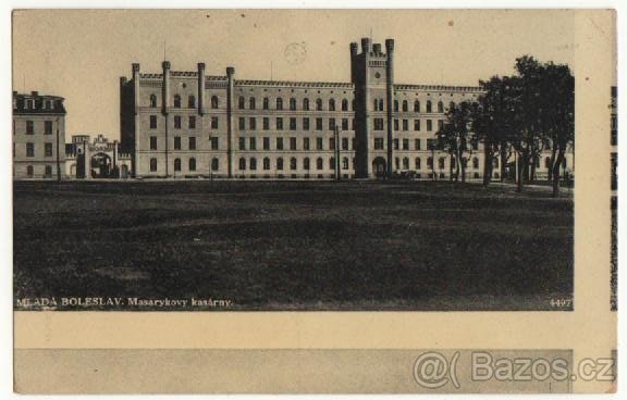 Stará pohlednice Masarykovy kasárny Mladá Boleslav