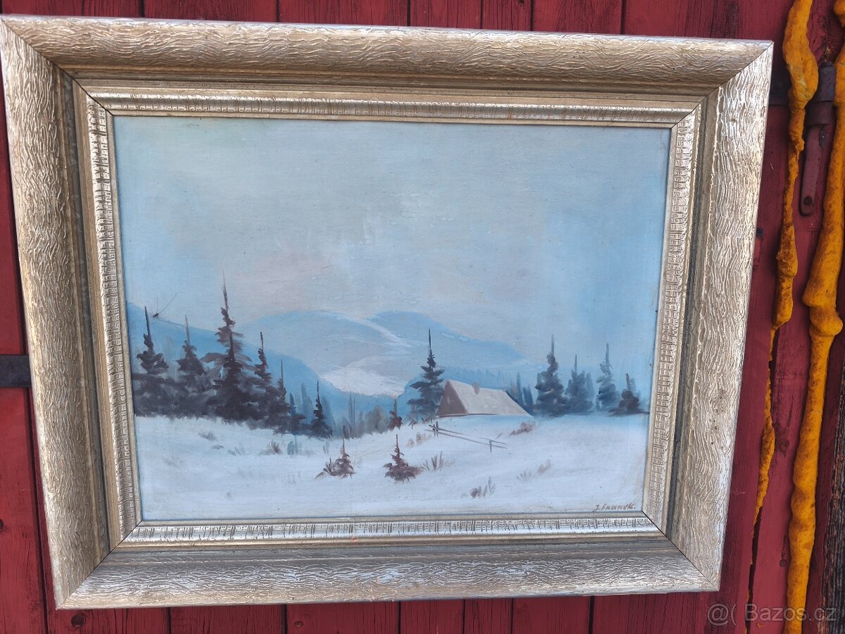 Olej na plátně zima 76x50cm.