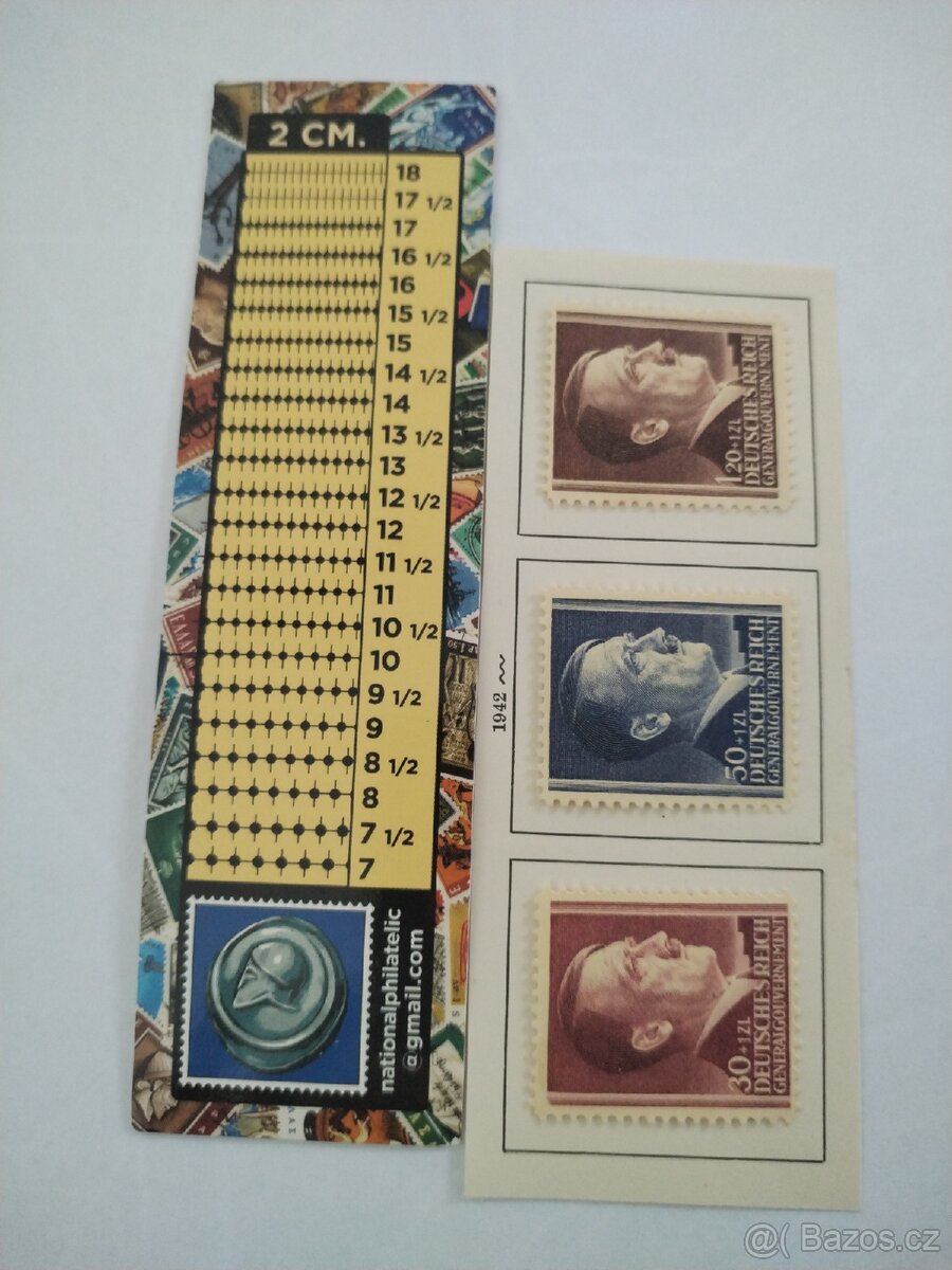 německé poštovní známky z období druhé světové války, konkrétně ze série vydané v roce 1942 pro použití v oblasti Generálního gouvernementu. Cenu nabídnete