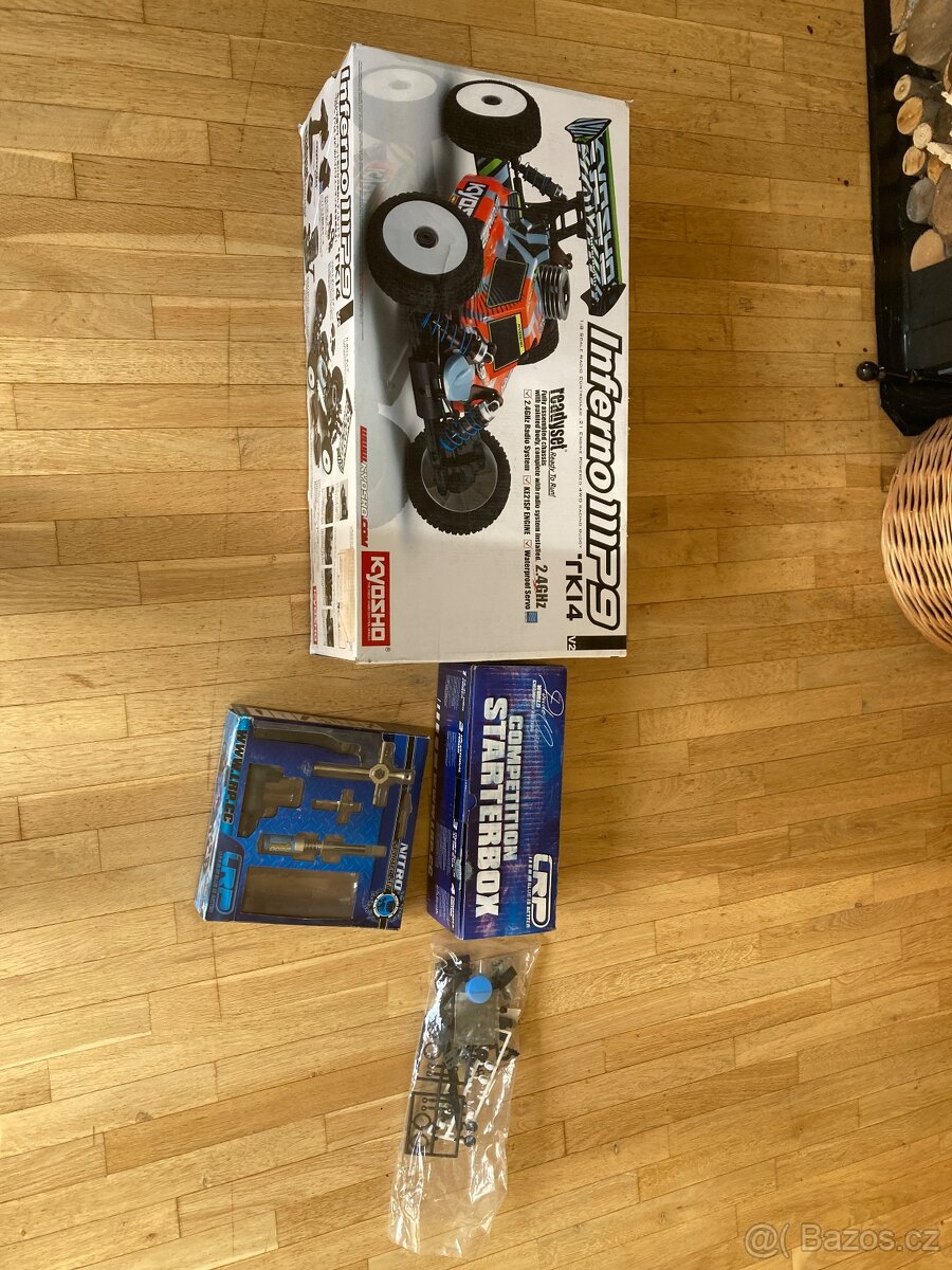 Prodám Kyosho mp9 1:8 . Chybí přední tlumiče . V ceně je startovací set plus pár drobností .